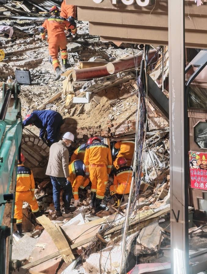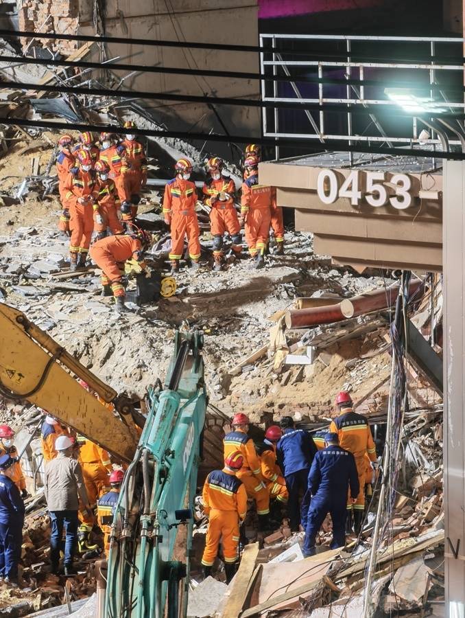 目击者称,由于仍有人员被困,救援队暂未选择使用挖掘机等大型机械破拆,而是使用铁锹等工具进行救援,现场不时还传来破碎锤的声音。截至29日19时30分左右,救援队已在倒塌的楼板下挖掘出了一条救援通道,有救援队员匍匐进入楼体寻找被困人员,还有救援队员使用生命探测仪等设备进行搜索。